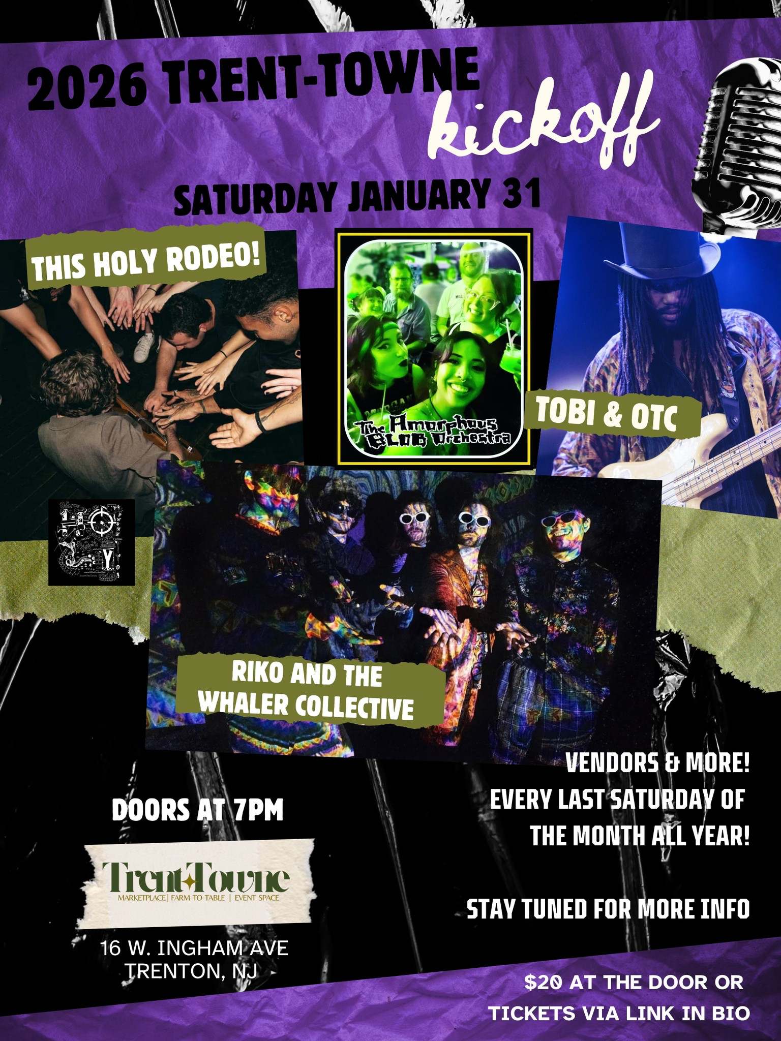 January 31, 7pm Trent-Towne Market, 16 West Ingham Avenue, Trenton. Every last Saturday of the month, join us for a high-energy music showcase featuring local talent from across the Tri-State area. Expect good vibes, live performances, and community spirit!